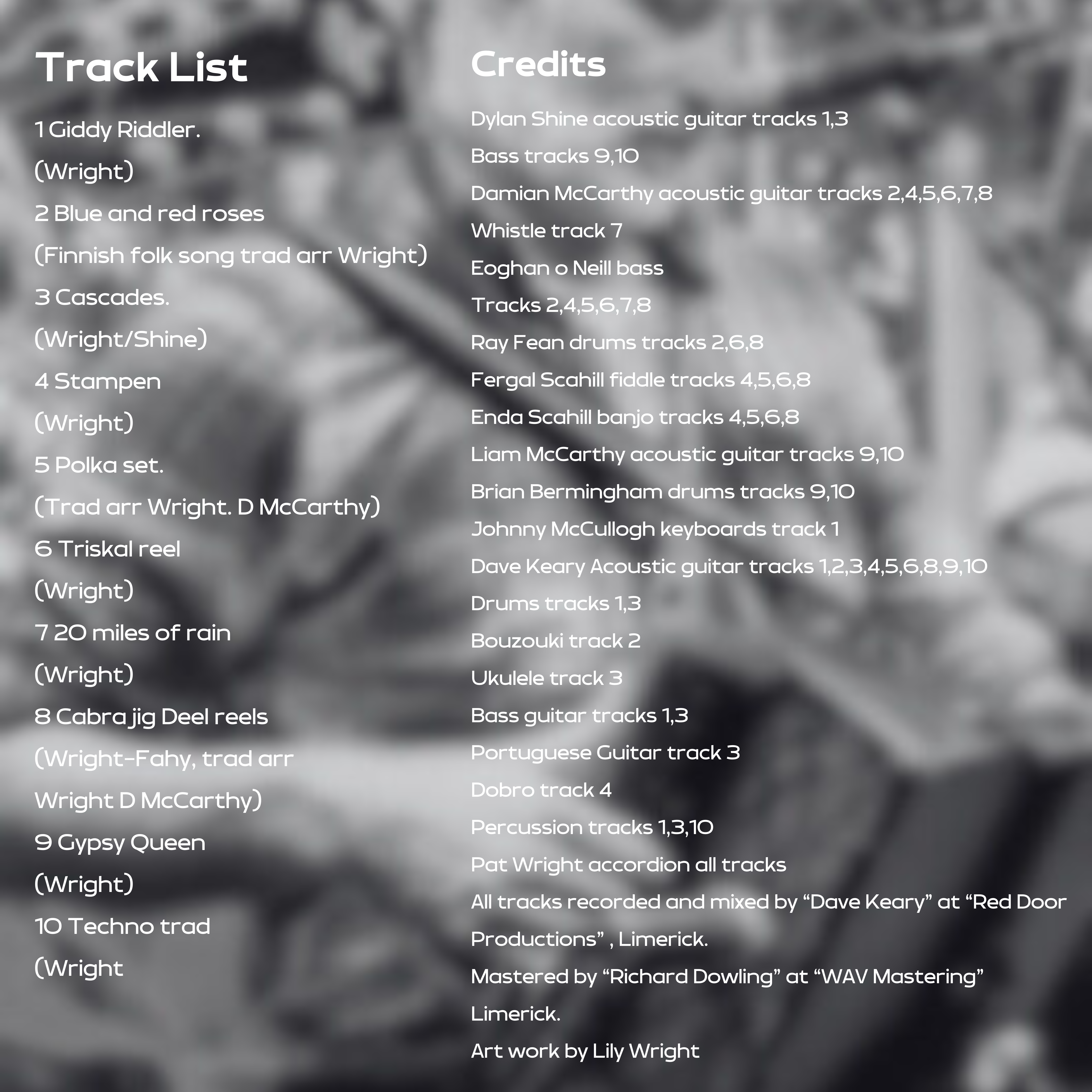 All tracks recorded and mixed by “Dave Keary” at “Red Door Productions” , Limerick.